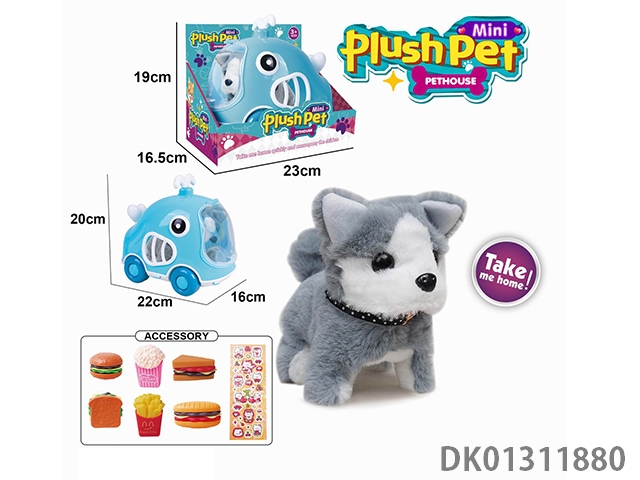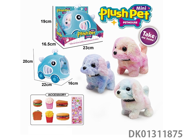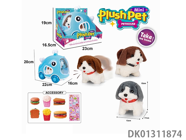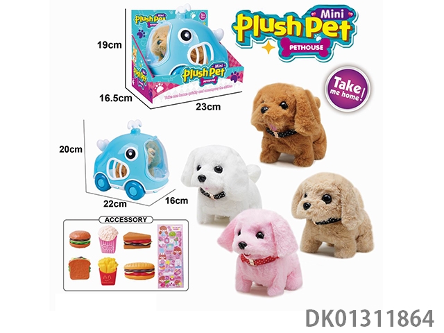 Electric colored plush walking dog and whale animal cage and burger combo