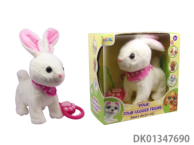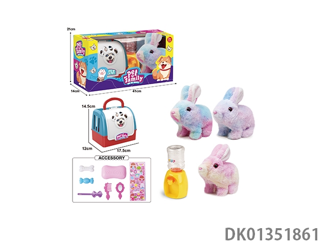 Electric plush colored walking rabbit, water dispenser, and small accessories