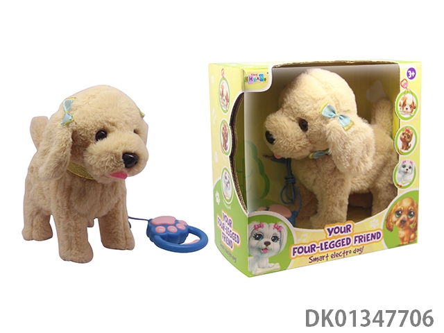Electric colored plush walking dog, water dispenser, and accessories (3-color mixed)