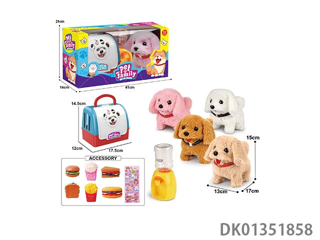 Portable cage electric plush walking dog and water dispenser and accessories (4-color mixed package)