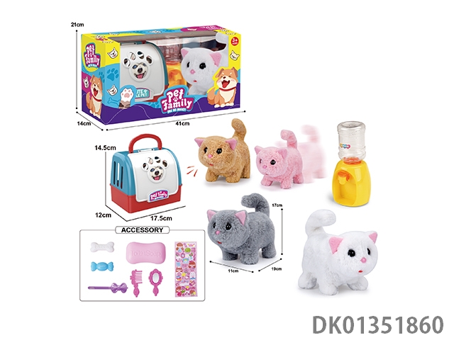 Portable cage electric plush walking cat and water dispenser and accessories (4-color mixed package)