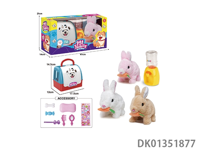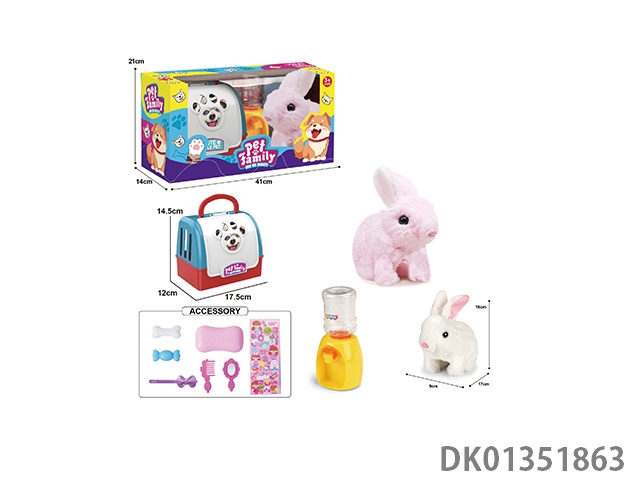 Portable cage electric plush walking rabbit and water dispenser and small accessories