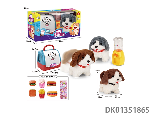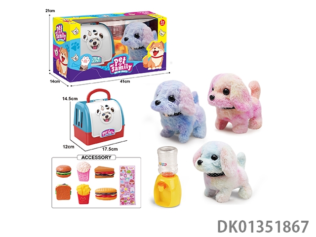 Portable cage electric plush walking dog and water dispenser and accessories (3-color mixed package)