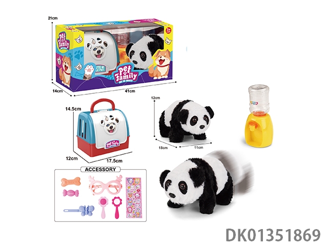 Handheld cage electric plush walking panda, water dispenser, and accessories (monochrome)