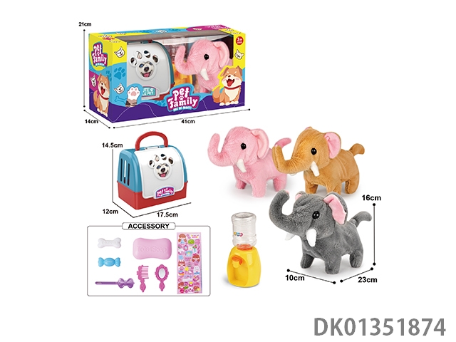 Portable cage electric plush walking elephant and water dispenser with small accessories (3 color mix)