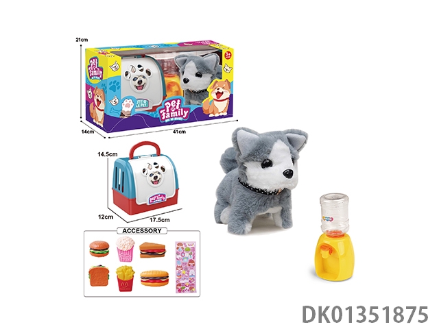 Handheld cage electric plush walking dog, water dispenser, and accessories (monochrome)