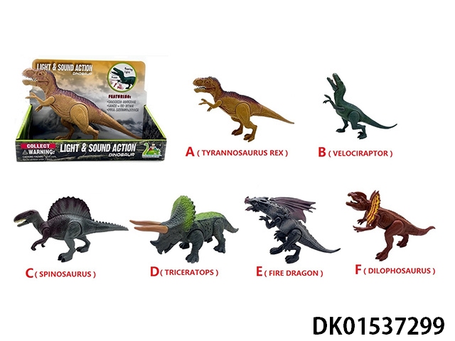 Sound and light small hand press dinosaur - a tyrannosaurus rex/b velociraptor/c spinosaurus/d triceratops/e flying dragon/f double crown dragon (6 types not mixed)