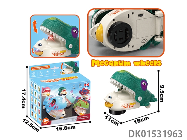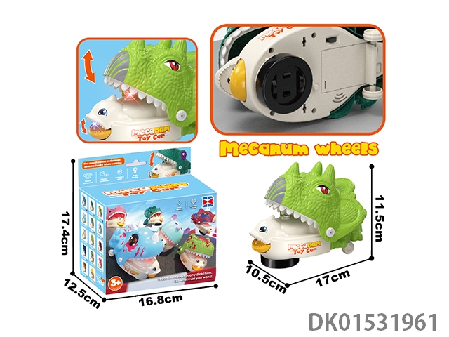 Electric universal dinosaur, pink/green (with lights, music, and movable mouth)