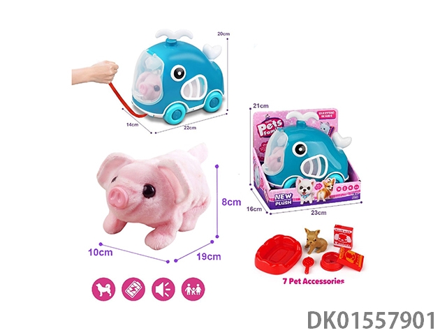 Whale rope car electric plush pink pig and accessories