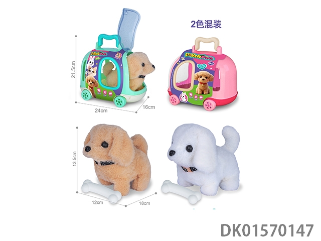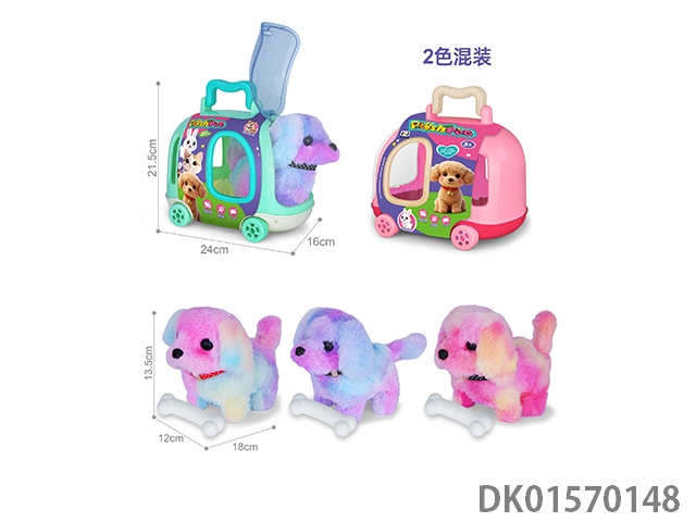 Electric simulation plush pet dog and bone (colorful dog)