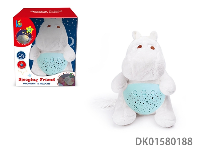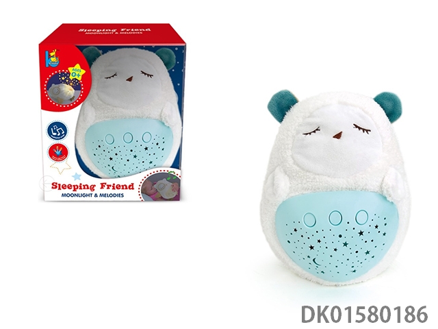 Light, music, soothing projection, sleeping bear