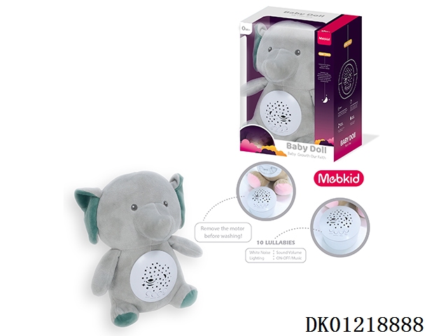 Baby plush soothing doll (elephant) music, light projection, no bag, 3 aaa capsules
