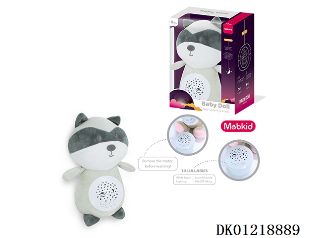 Plush comfort doll (raccoon) music, light projection no pack 3 aaa