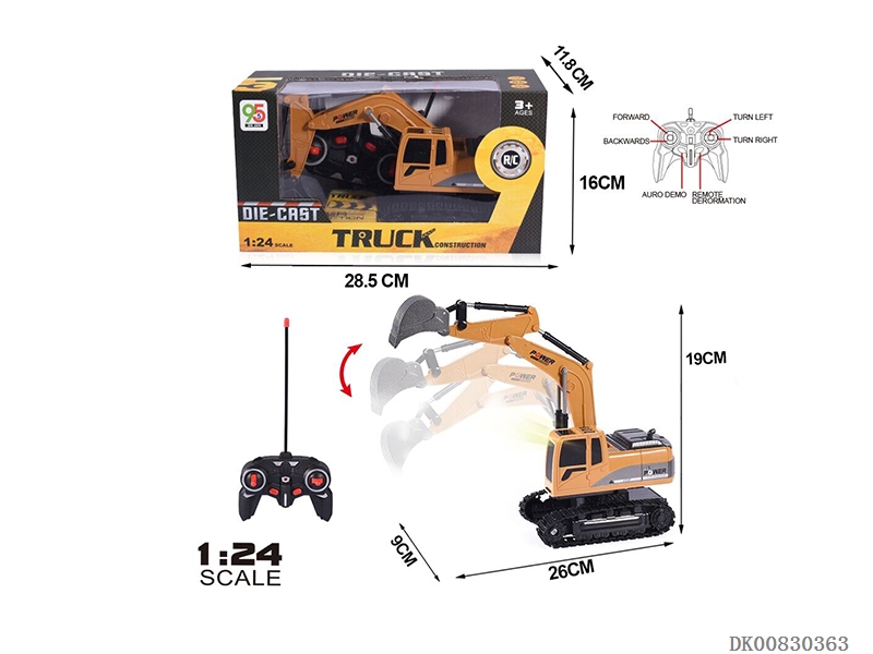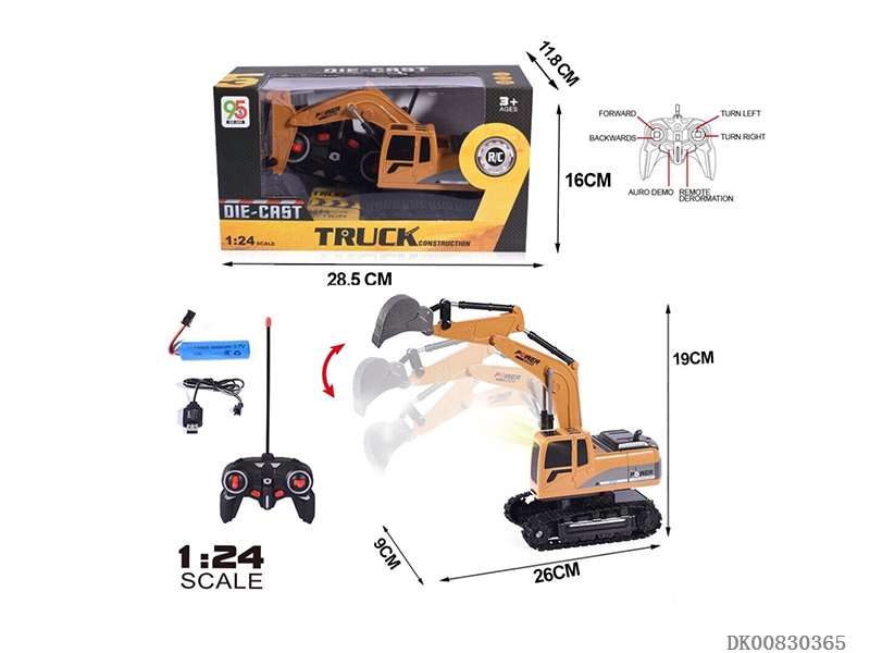 1: 24 One button demonstration rocker arm 6-way alloy engineering excavator remote control vehicle (including electricity)