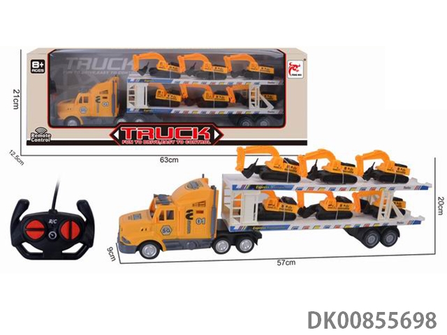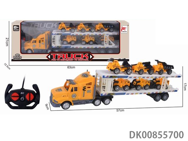 Remote control 4 long container truck (with 6 large engineering vehicles) forward back left turn right turn stop