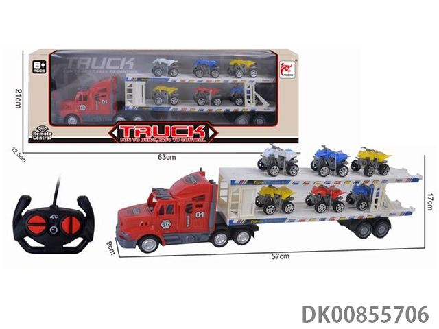 Remote control 4 full length container truck (equipped with 6 beach motorcycles) forward and backward, turn left, turn right, stop