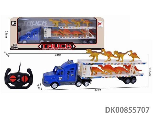 Remote control 4 full length container truck (equipped with 6 dinosaurs) forward backward left turn right stop