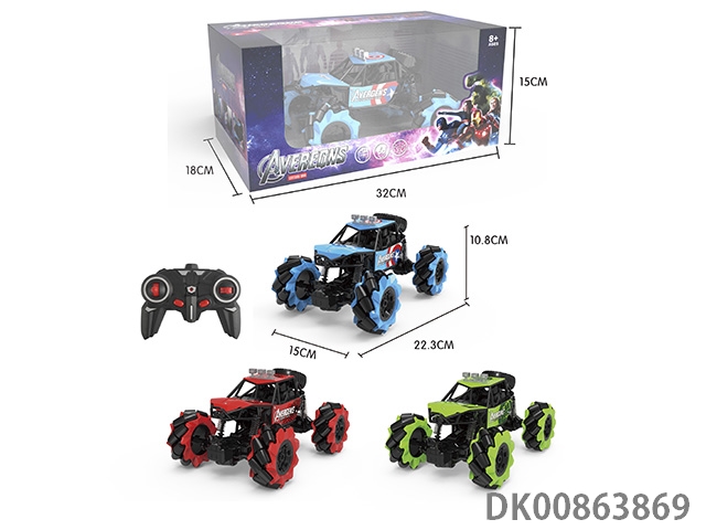 1/16 Olive plastic wheel stunt climbing car with led light music automatic demo package electric with handle remote control and watch remote control