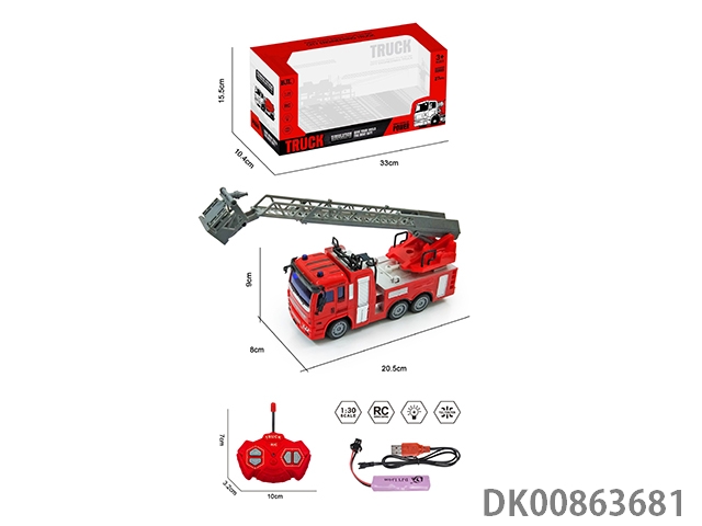 1: 30 Cross with light remote control fire ladder truck red