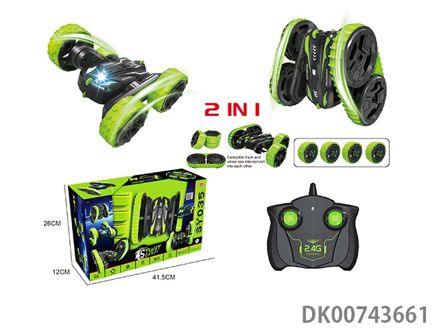 Twist arm stunt 2-sided vehicle (track wheel exchange 2-in-1)