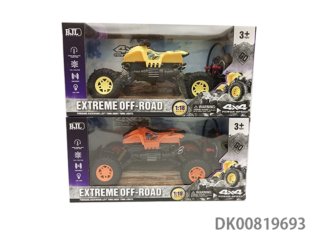 1: 18 / 4 Cross country motorcycle climbing car with light, orange and yellow mixed (without electricity)