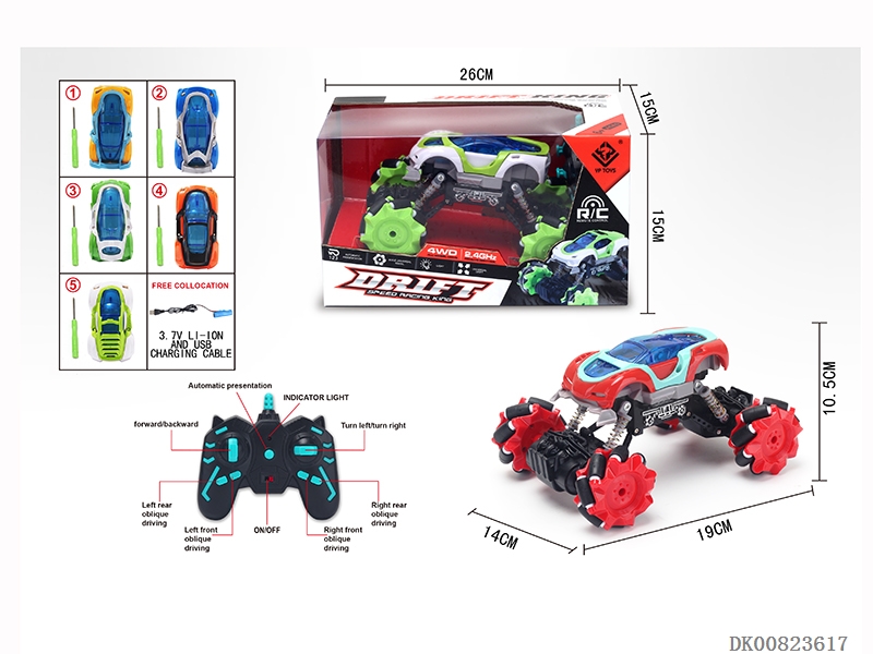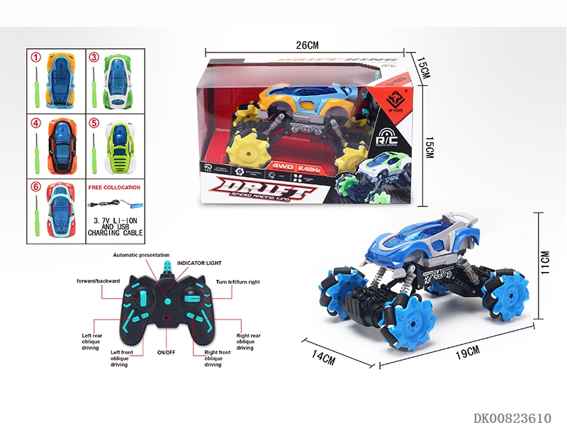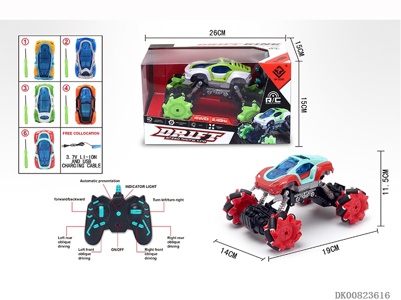 1:16 Eight way chameleon remote 3 wheel with light music spray