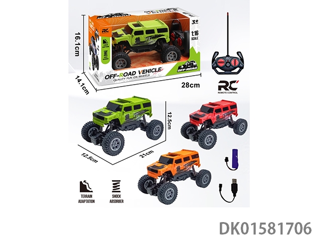 Remote control four-way 1:16 climbing off-road vehicle in red, orange, green and 3 colors (equipped with 3.7v500mAh battery and USB charging cable)