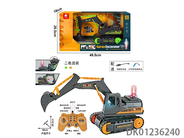 Spray light digging car, engineering yellow monochrome, 1:10 (including) body 7.4v rechargeable lithium battery, usb cable, water bottle, remote control (2aa is not included) 6-way