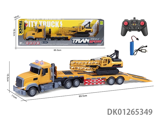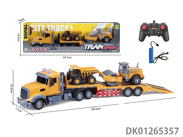 European 1:24 six way light and music 2.4g frequency remote control single-layer transport trailer (including 3.7v lithium battery and usb charging cable)