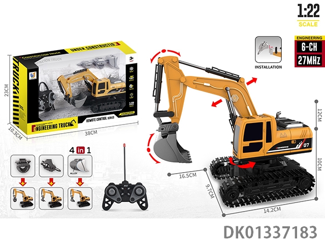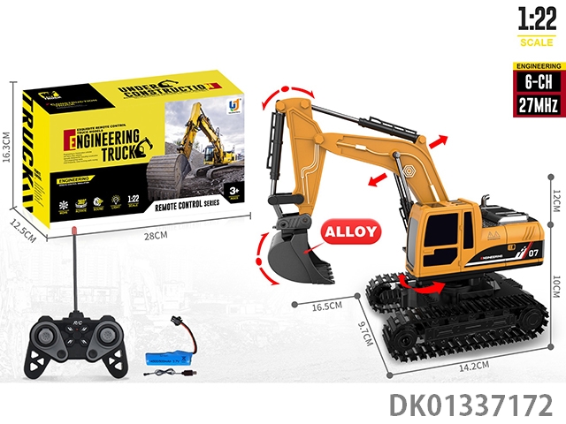27Mhz 6-way 1:22 action sound effect alloy head excavator bucket remote control engineering vehicle (including electricity)
