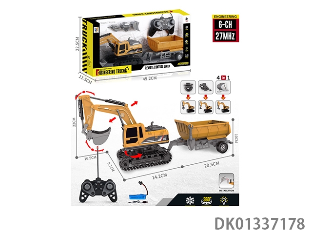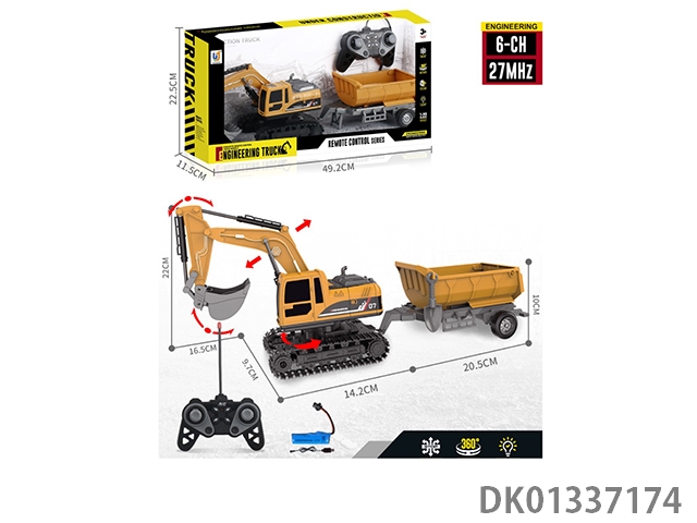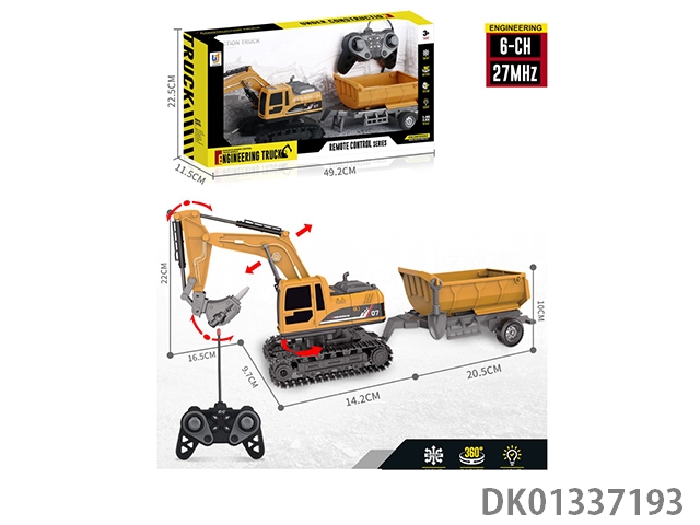 27Mhz 6-way 1:22 action sound effect excavator remote control engineering vehicle (with trailer) (including electricity)