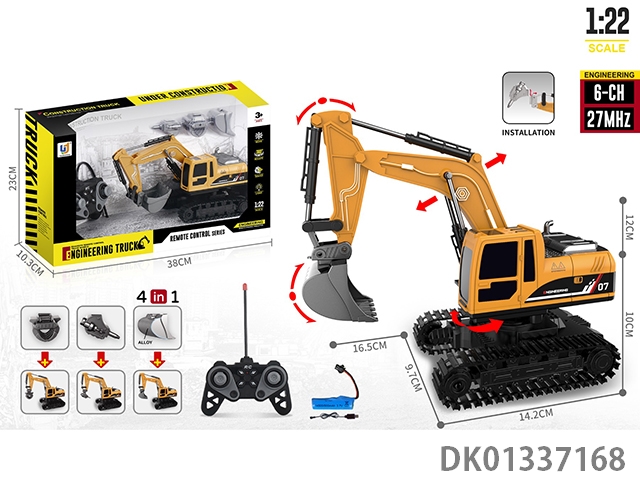 27Mhz 6-way 1:22 action sound effect alloy head excavator bucket remote control engineering vehicle (including electricity)