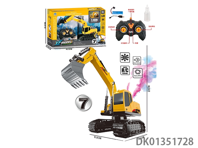 1: 20 2.4G 7-way remote controlled excavator (spray, light, music), including electricity