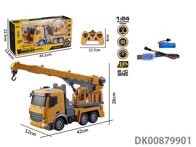 1: 24 7-Way 2.4g frequency remote control crane engineering vehicle with light