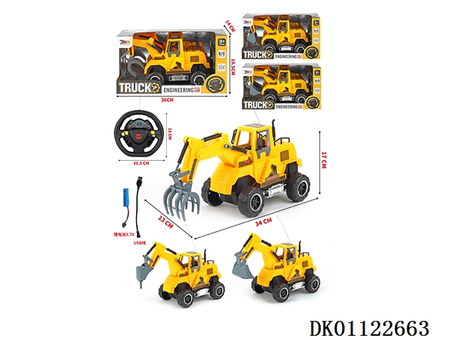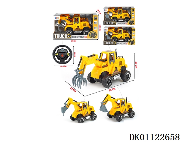 Three types of four-way remote control engineering vehicles (with random colors), including power supply