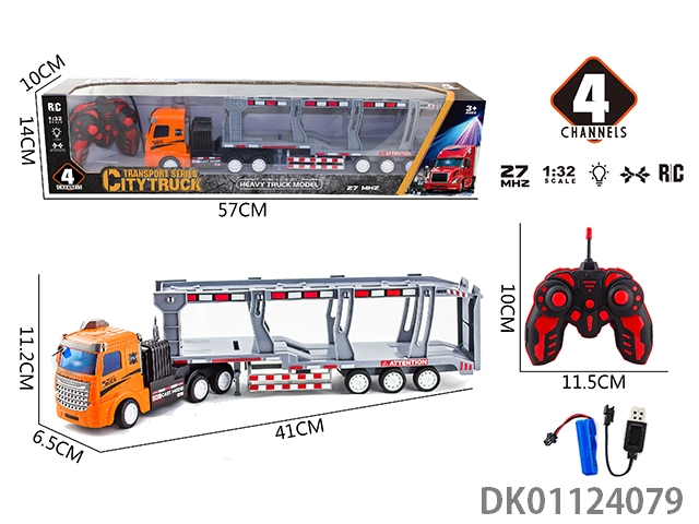 Flat head 1:32 4-way light remote control 2-layer transport trailer