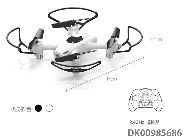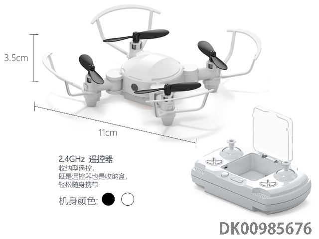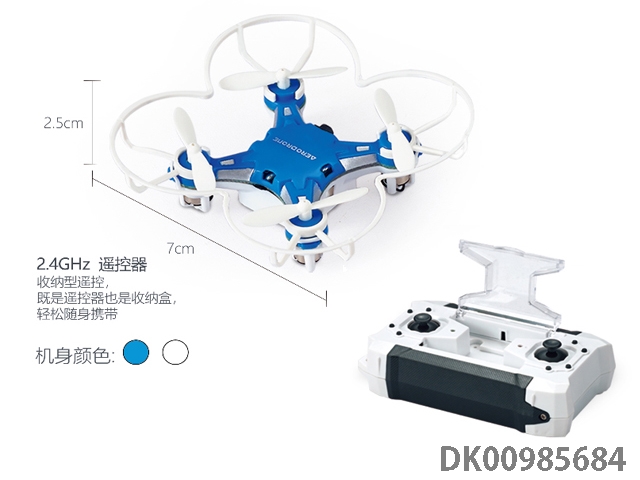 2.4G4 pass 360 u00b0 rollover 6-axis gyroscope mini 4-axis aircraft storage box remote controller with led light, white and blue, 2-color clear packaging