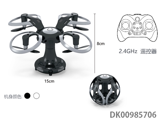 2.4G4 pass 360 u00b0 roll 6-axis gyroscope mini spherical aircraft with led light, black and white, 2-color, clear