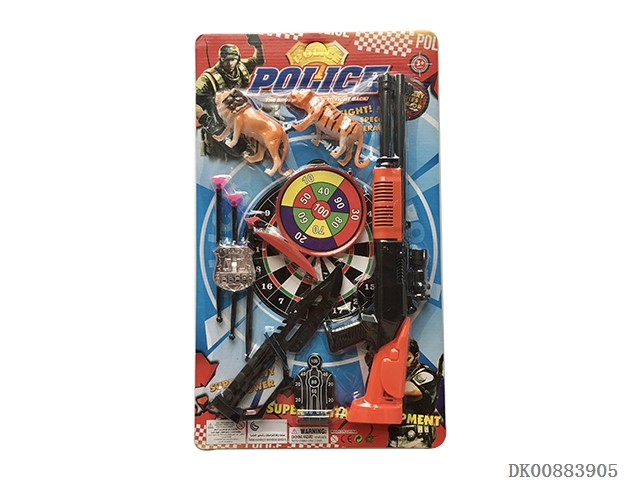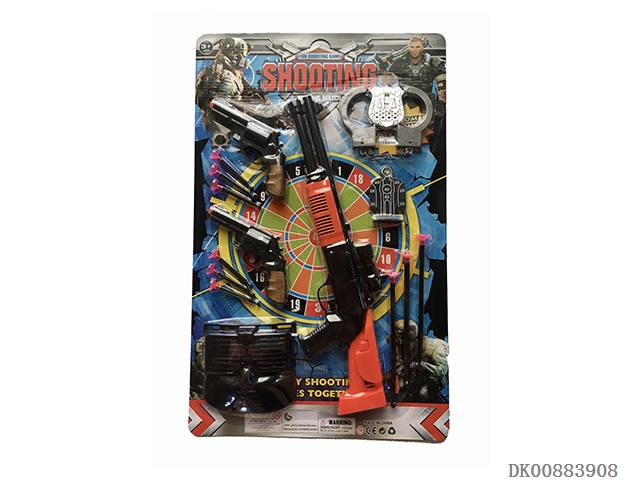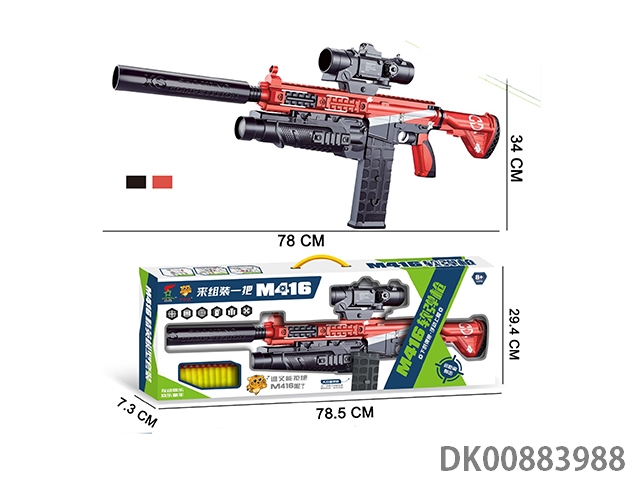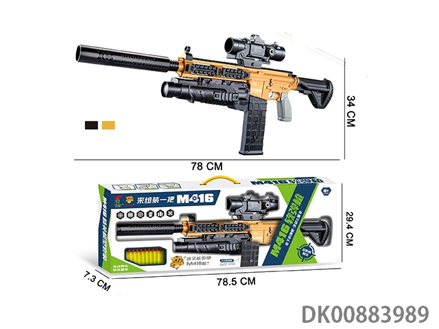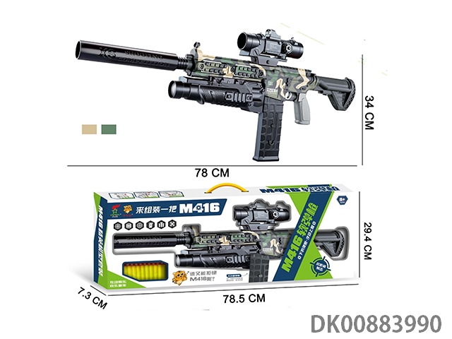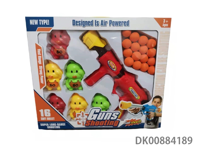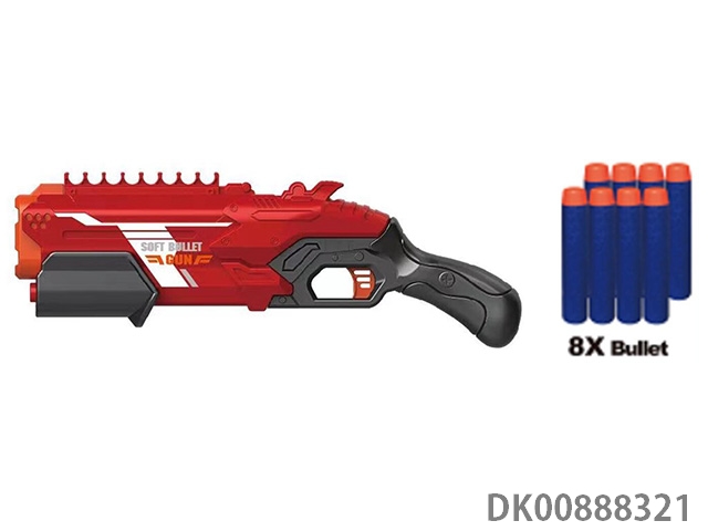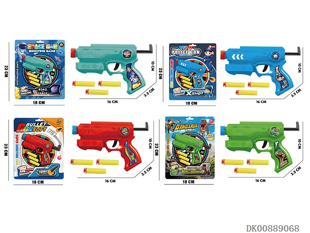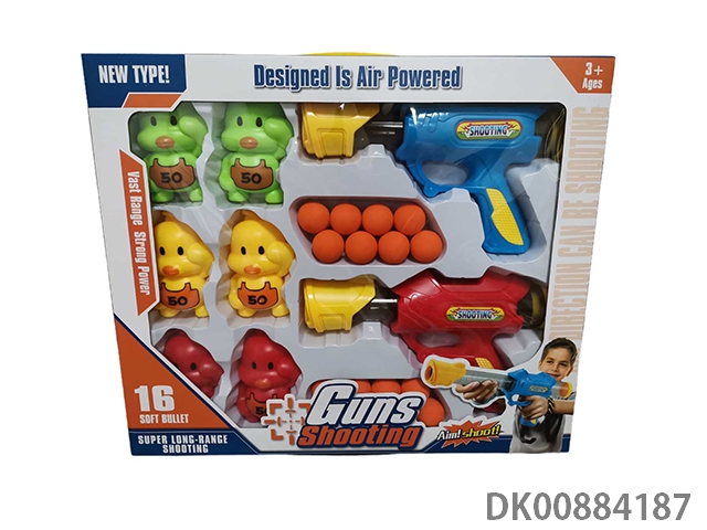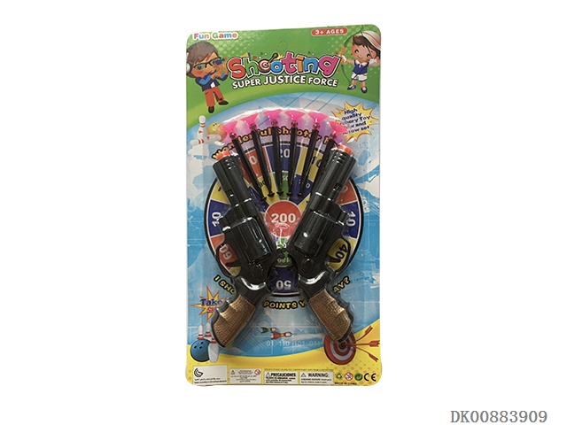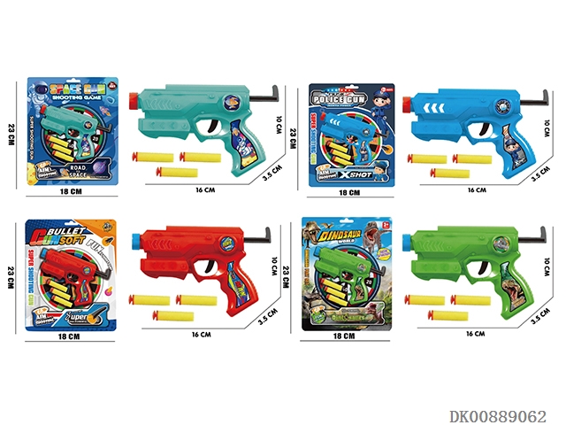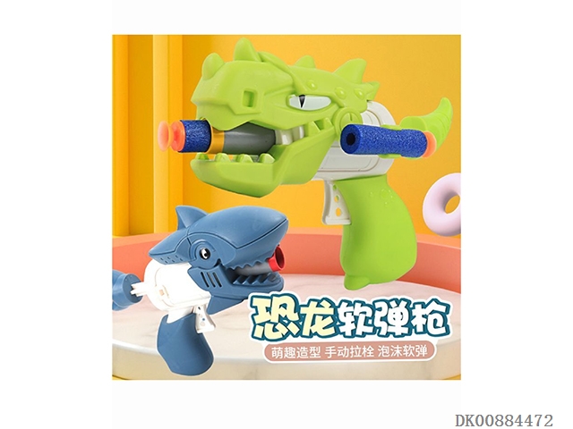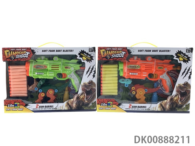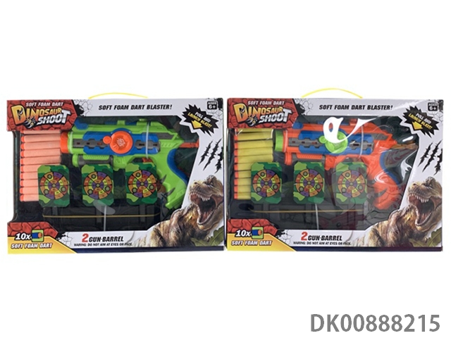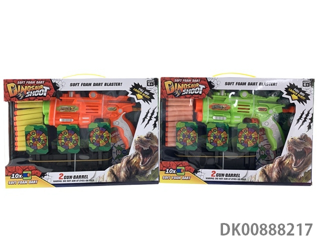 New conventional dinosaur version hand pulled double barrel continuous firing soft bullet gun (10 rounds of no. 1 gun and 3 company integral automatic return target and eva environmental protection bullets) (gun 2-color mixed loading)