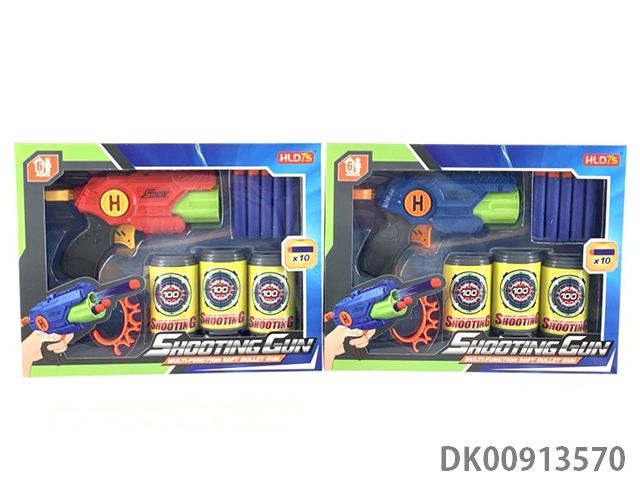 Solid color soft bullet gun needle gun is equipped with 2 ducks, red gun head and two-color mixed loading