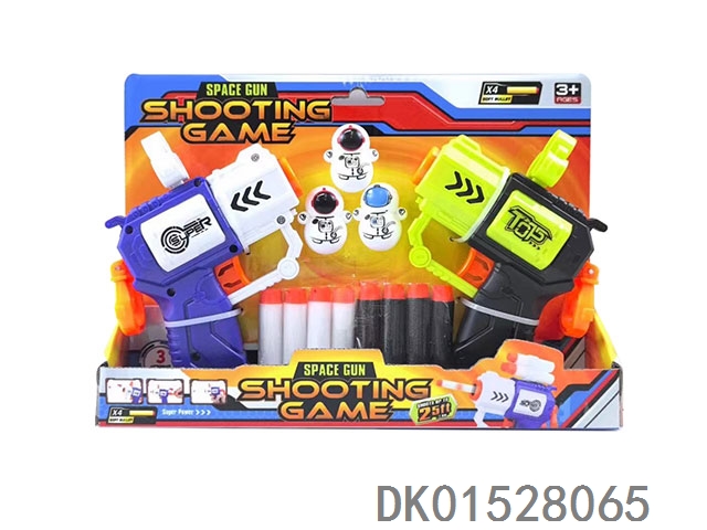 2 Manual mini soft bullet guns with 8 soft bullets, 3 astronaut tipping heads (made of abs material)