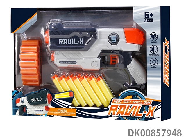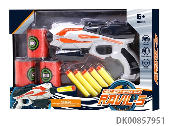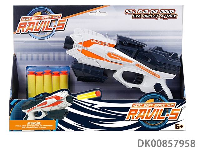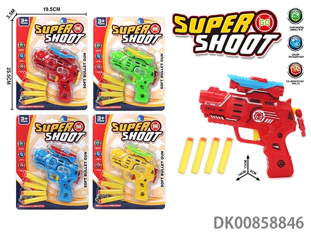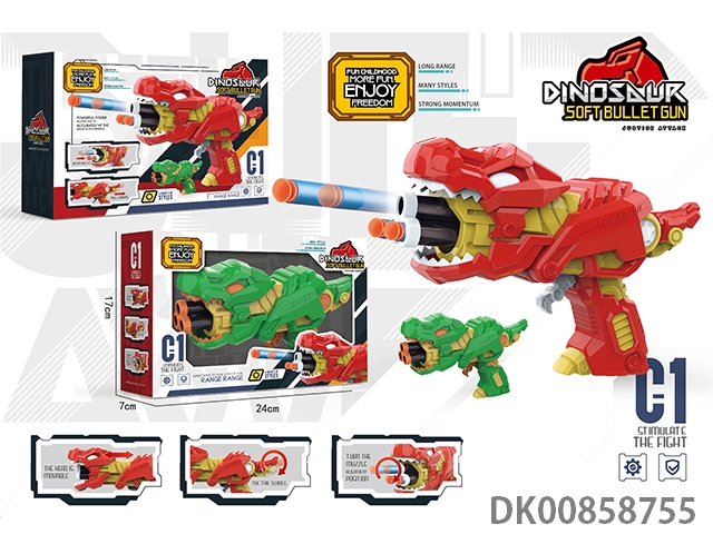 Pvc soft bullet dinosaur gun / hand pull (tyrannosaurus rex \/ green and red)