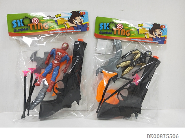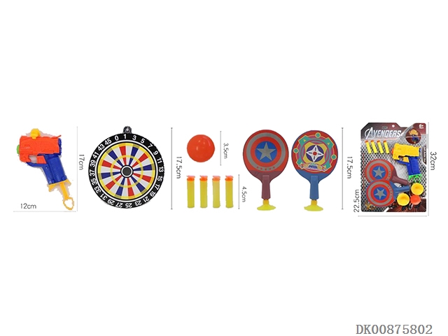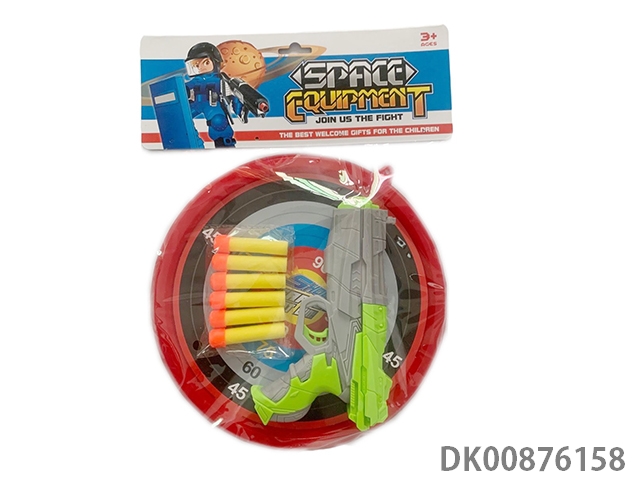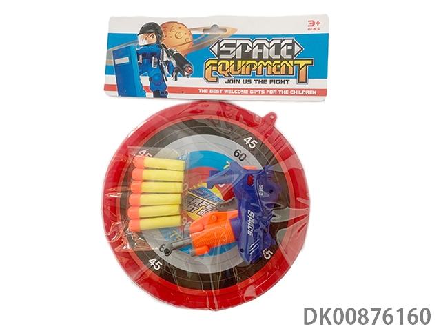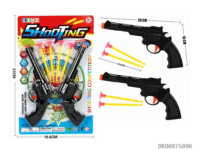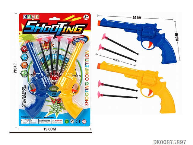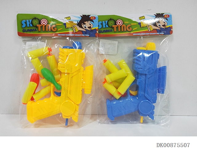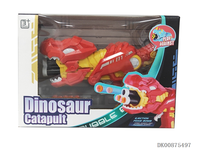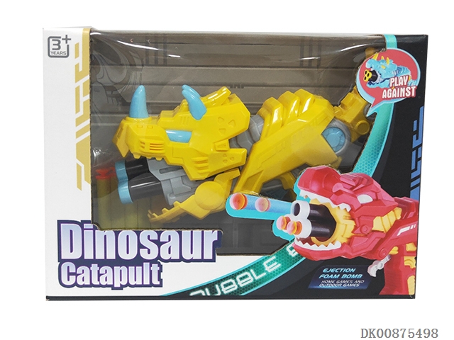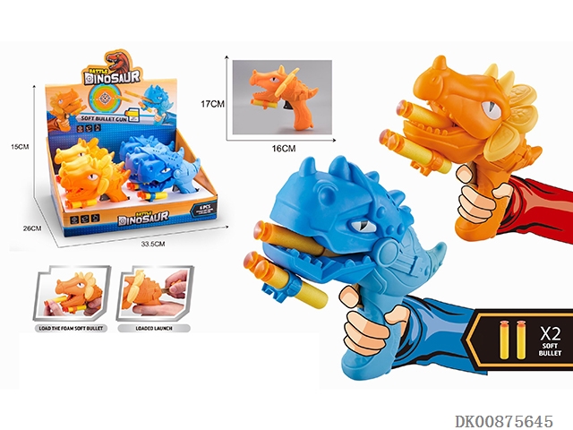 Pvc soft bullet dinosaur gun / hand pull (3-horned dragon \/ blue, yellow mixed)