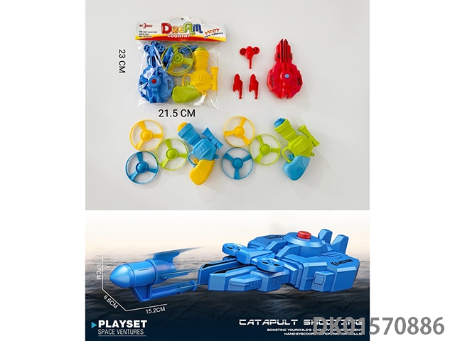 Launch drone rocket with flying saucer gun and bamboo dragonfly gun