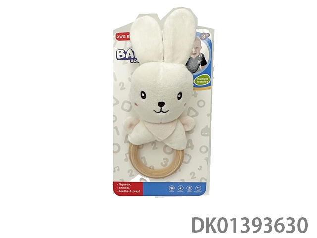 Bb calls little rabbit baby plush wooden ring hand ringing bell
