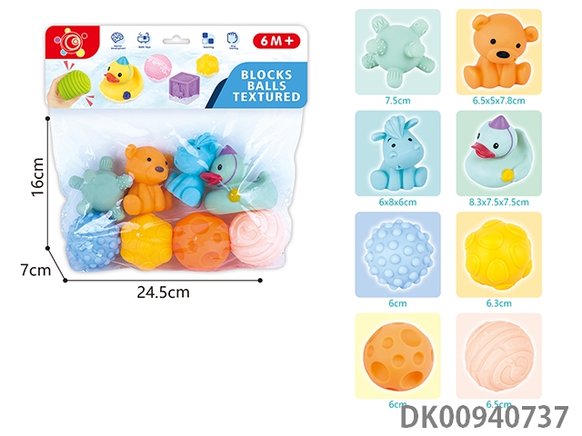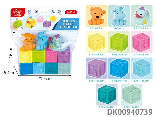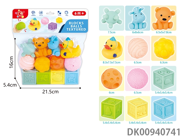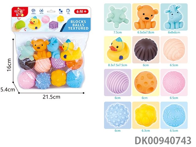 Baby soft rubber building block kneading ball animal (12pcs)