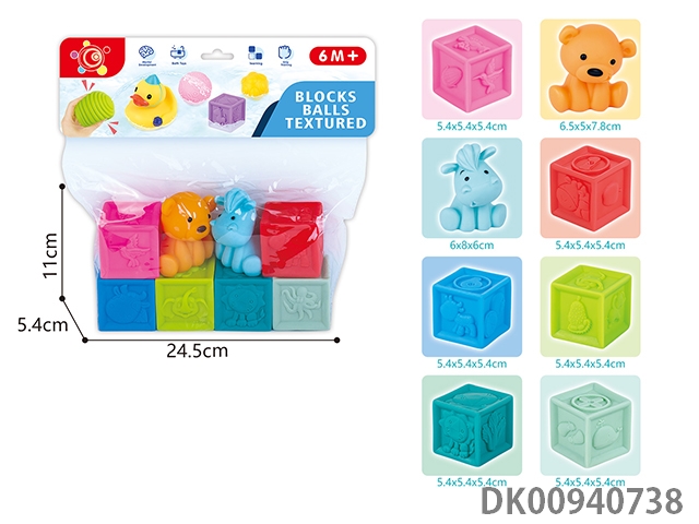 Baby soft rubber building block animals (8pcs)
