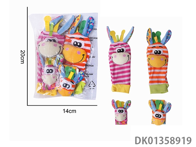 Baby cartoon colorful donkey wrist strap ringing socks four piece set