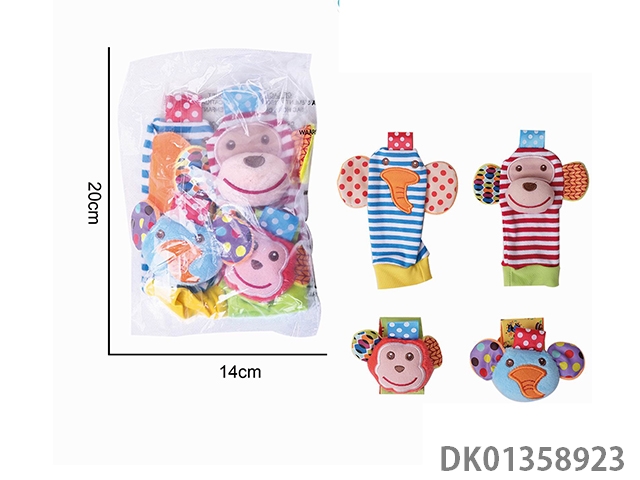Baby cartoon monkey elephant wrist strap ringbell hand socks four piece set
