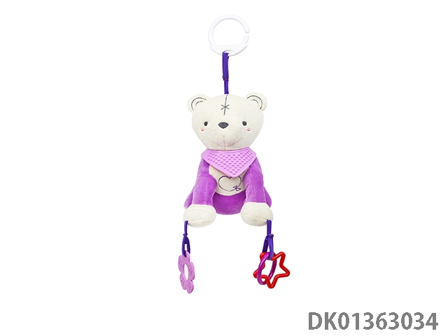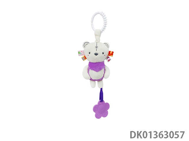 Purple bear baby neck gum pulling ring tube bell plush pendant